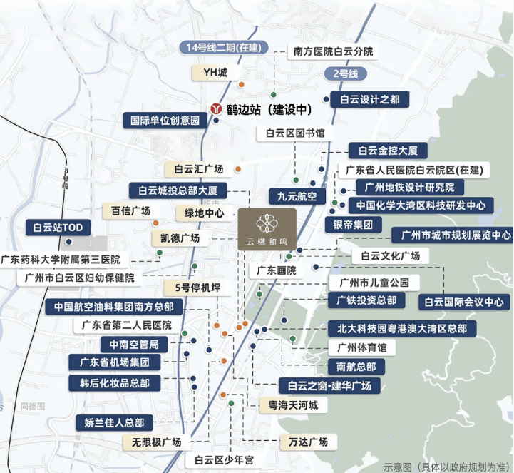 其次,项目位于白云新城中轴核心,享受着区域发展的全部红利。根据《广州市白云区国土空间总体规划(2021—2035年)》,白云区总体呈现“东山西水”大山水格局,白云山—六片山—帽峰山延绵纵贯,挺起广州中心城区的生态脊梁,而白云新城正是这一生态格局中的核心节点,同时也是白云区总部经济的聚集区。目前,白云新城已汇聚了众多总部企业、高端写字楼和优质配套,成为广州北部的商务中心和生活中心,未来随着白云站—白云新城连片发展规划的推进,板块价值还将持续提升,而国贸绿城云樾和鸣作为板块内的核心楼盘,将直接受益于这一规划红利。